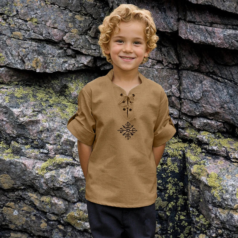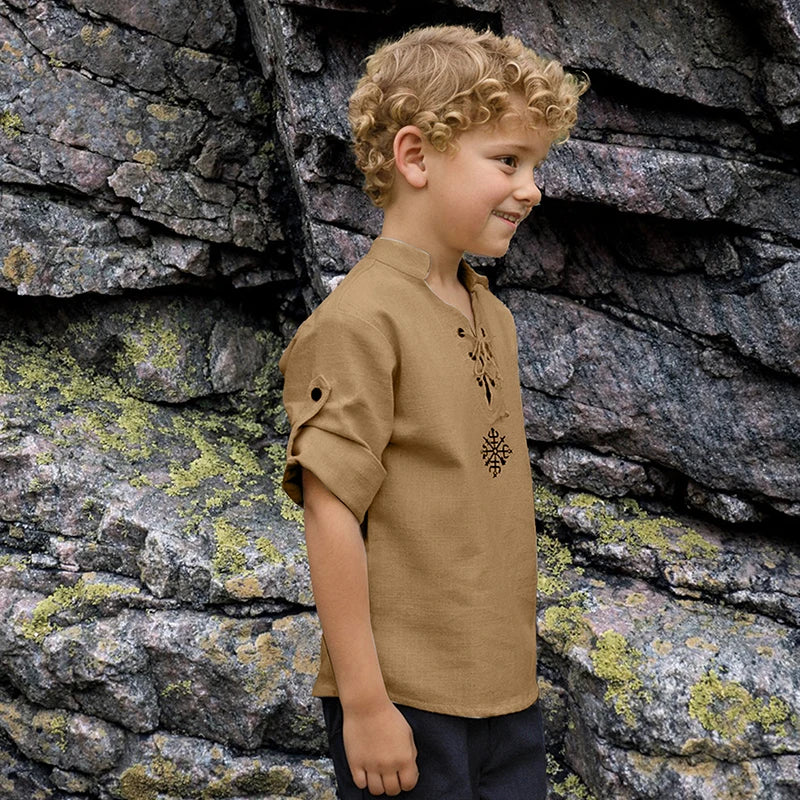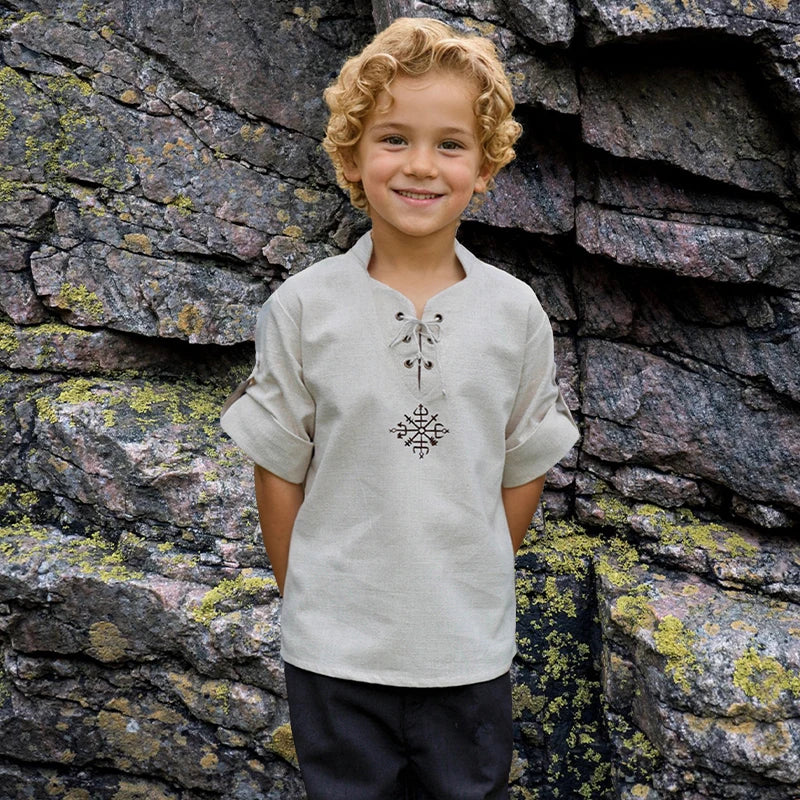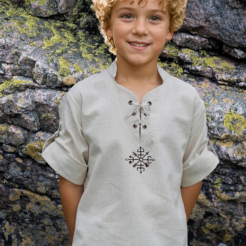 Kids Viking Embroidered Tunic Shirt – Cotton Linen Norse Costume
