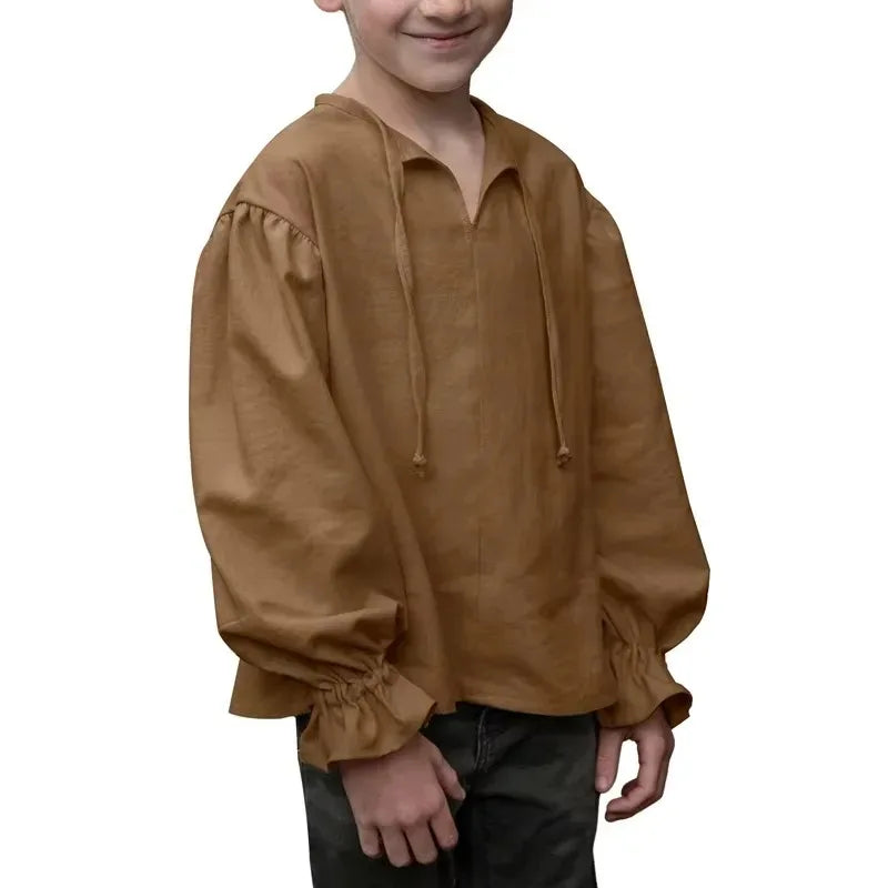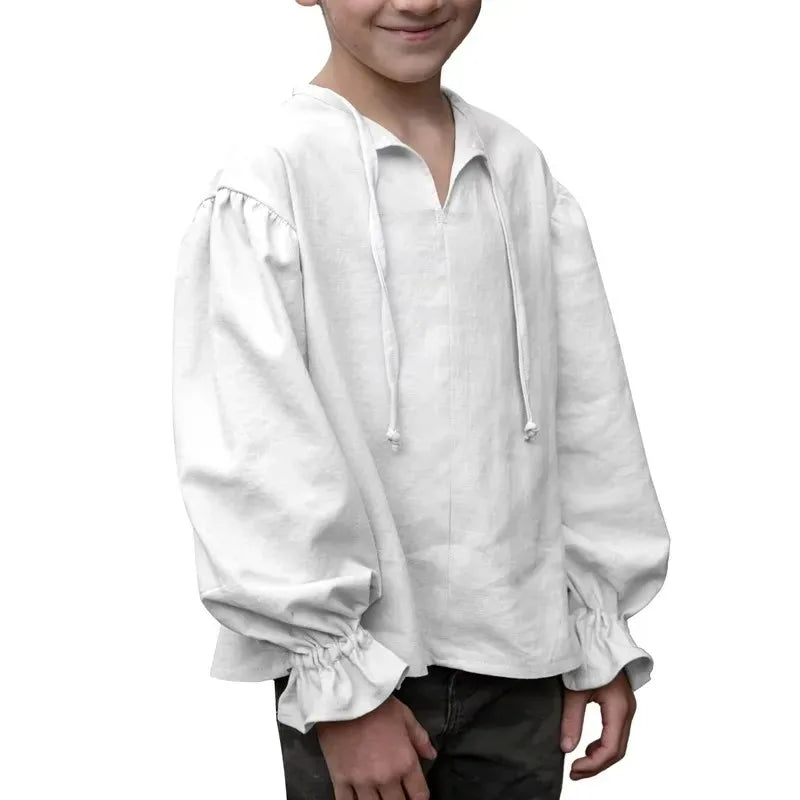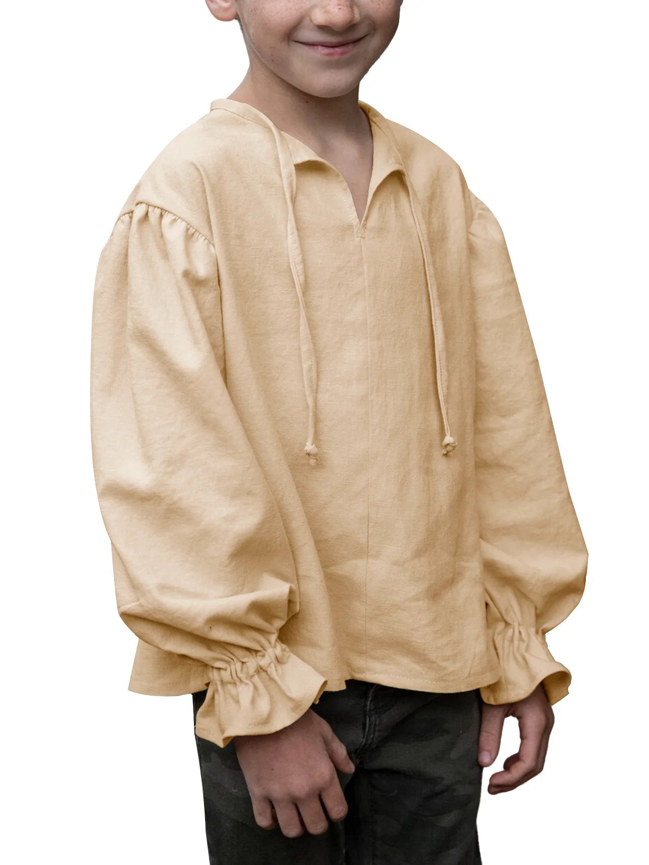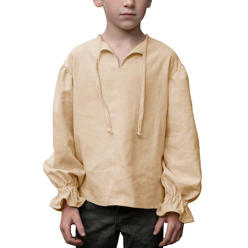 Kids Viking Pirate Lace-Up Tunic Costume – Cotton Linen Medieval Shirt