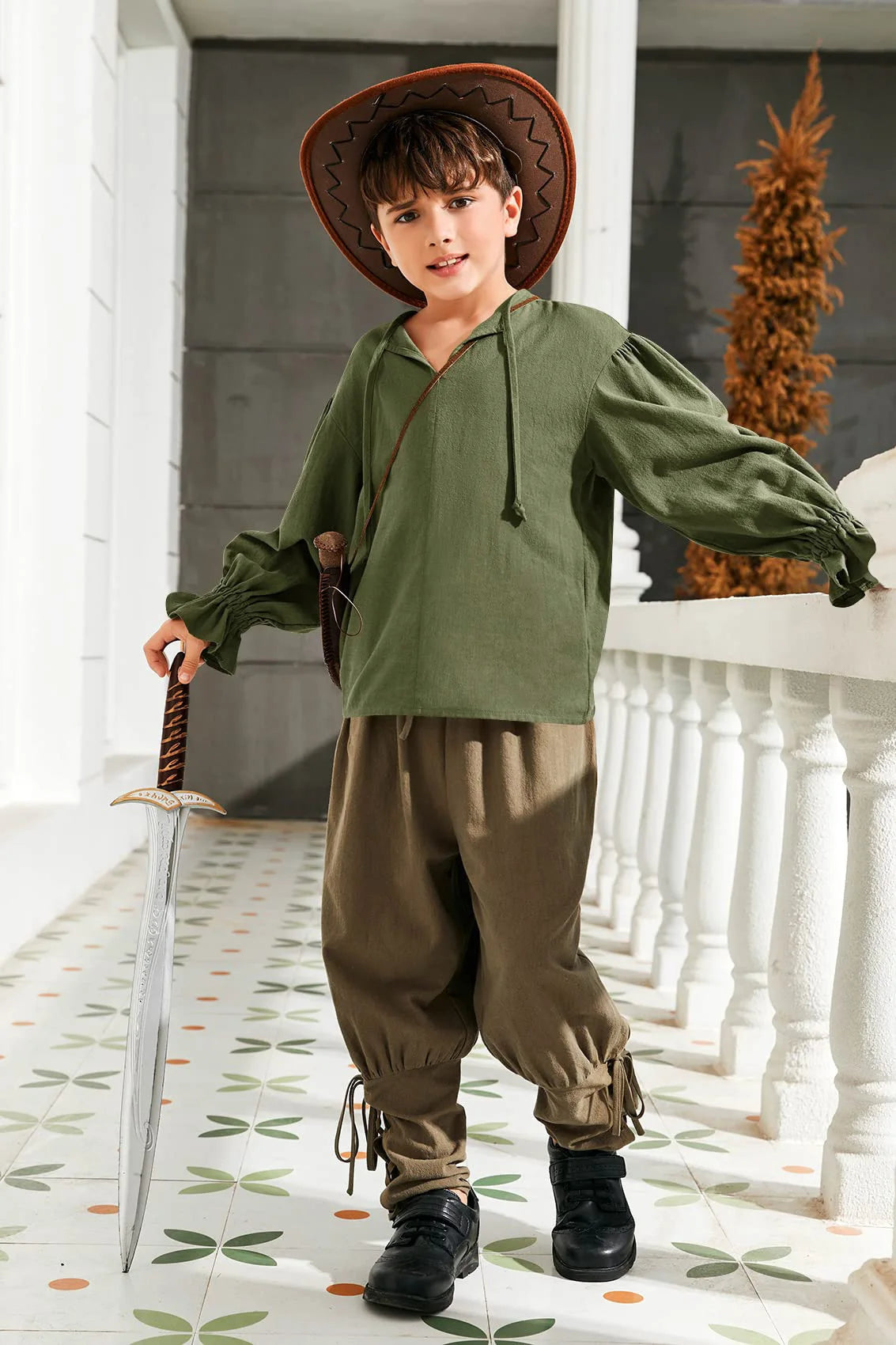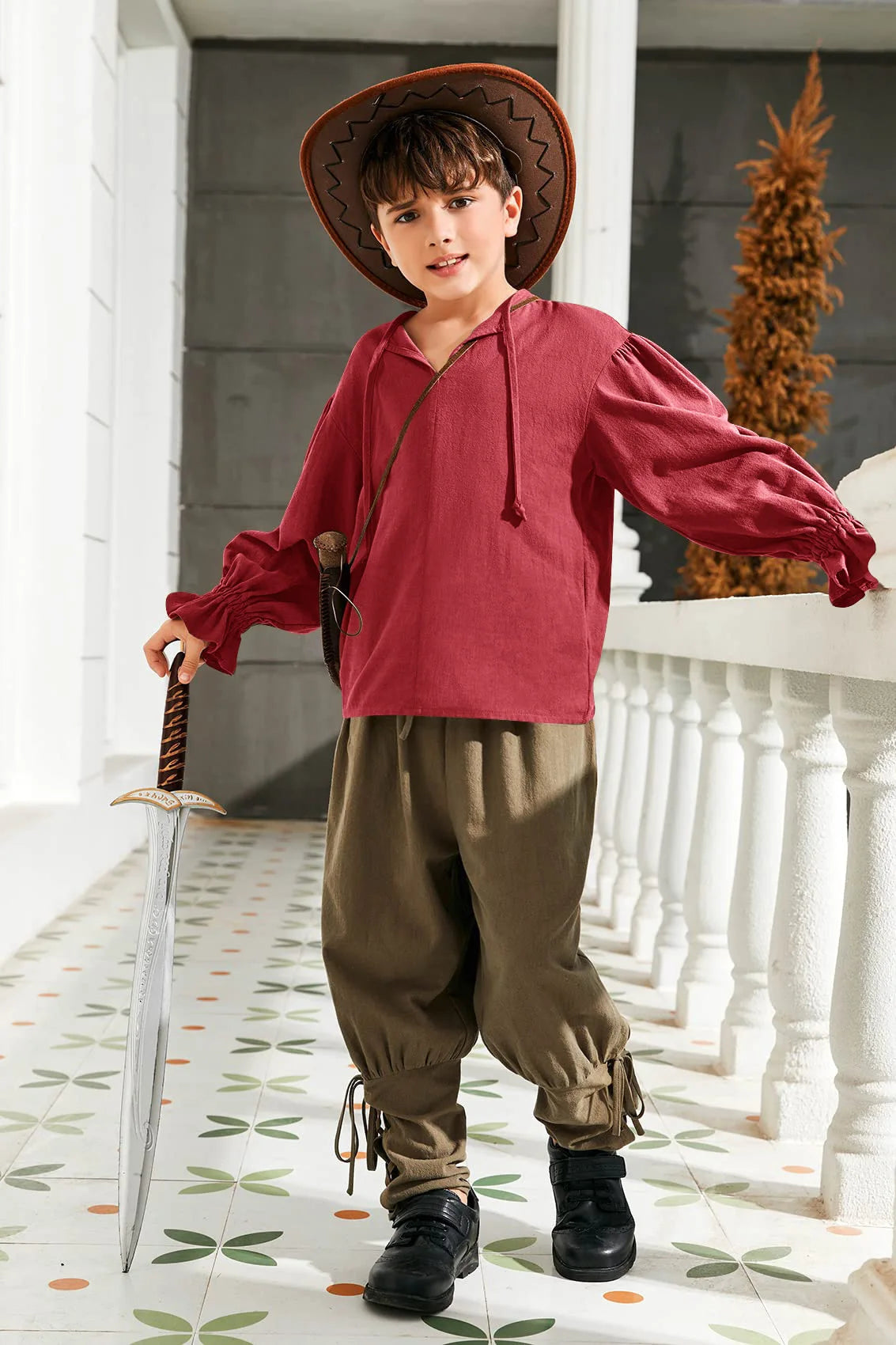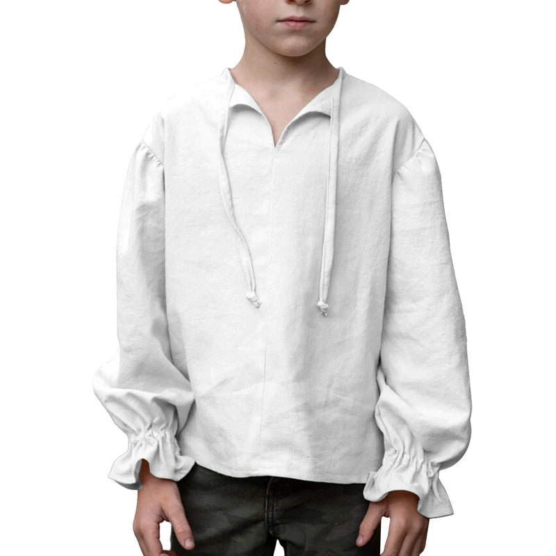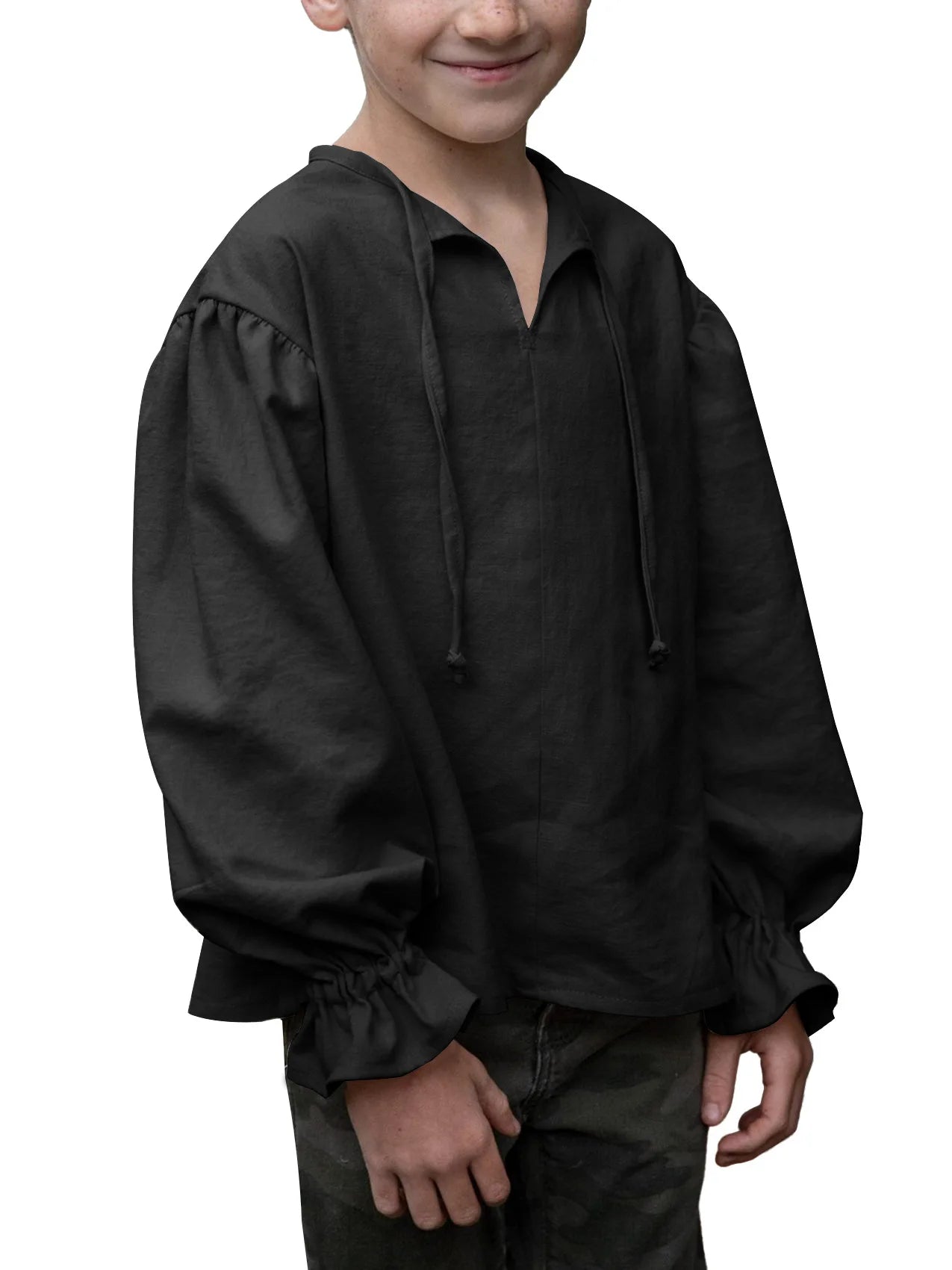 Kids Viking Pirate Lace-Up Tunic Costume – Cotton Linen Medieval Shirt